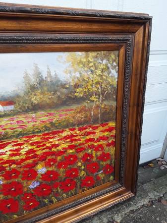 This painting originally sold for $355. The frame was $185, and the painting was $170. Selling both frame and painting for $100. The frame is if the highest quality with carved etchings. See pictures. It is 34 inches tall by 4 feet 10 inches wide. Text or call. Emails must leave phone number.