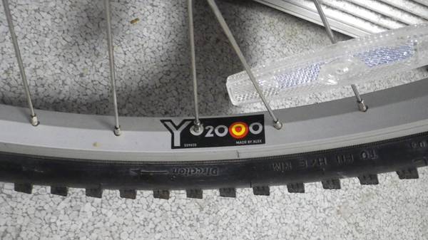 Rear wheel and tire for 26" Mountain bike Alex Y2000 alloy rim and freewheel hub. 26x1.95 tire. 130 hub spacing Taken from new bike after about a week, (replaced wheel set after front wheel got...