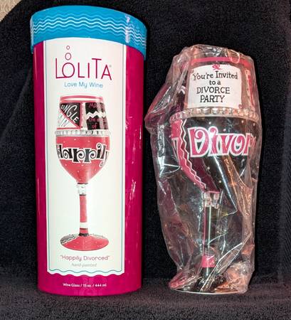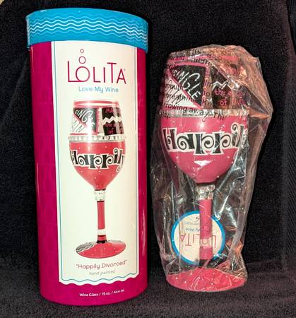 NEW Lolita HAPPILY DIVORCED Wine Glass Hand Painted - collectibles -...
