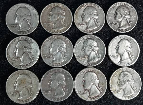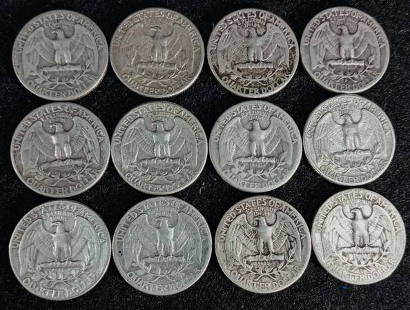EACH quarter is $12.50, NOT $13.00 for all (12). Every quarter pictured contains 90% Silver and 10% Copper.