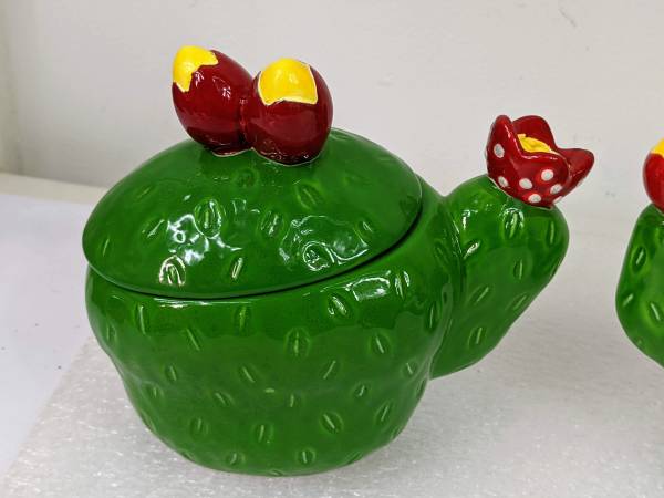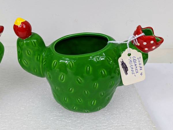 Dept 56 Mirage Green Cactus Flower Sugar and Creamer Set Anyone with a Southwestern decor could use this Sugar Bowl and Creamer. Made by Department 56 in the Mirage Pattern They are both made to...