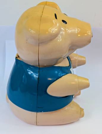 Vintage 1990 Fun-Damental The Original PINK PIG, Oinking Cookie Jar, Oinking Sounds He grunts when his head is tilted back. The interior is a darker pink. In working order - requires 2 AA batteries...
