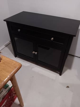 Black Table with glass doors & 2 shelfs Calls only 8 five 6 667 50 four 5 No texting No e-mails Cash only leave message with #