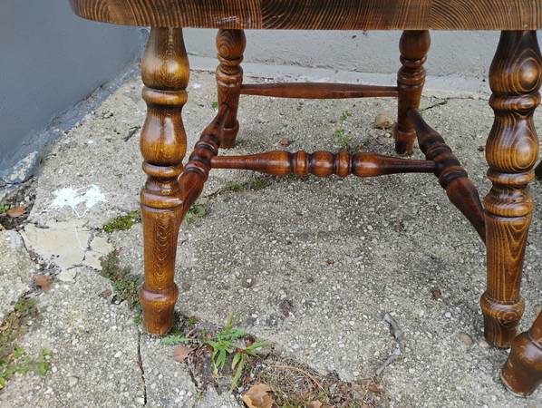 Mint Condition Set of 6 chairs wide seat 16" Arm chair 17.5" Solid Heavy Back 26" high rail back goes though the seat Don't make m like this anymore