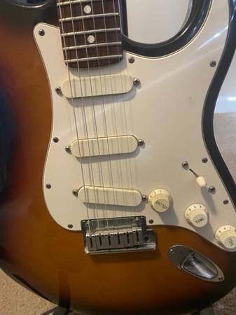 I have a Great 1992 Fender Strat Plus guitar that was made from fenders custom shop USA .One of the best necks I ever saw with the lase sensor pick ups .,Roller Nut ,Locking keys with the very best they put out .I have had it for many years and jammed with my son ,He had passed away and I don"t pick it up any more .Has the fender hard case with it.Cash only and for pick up.Sorry no trades.I am firm on the price . As noted in the picture of the head stock with the spots use to be holes where some one had put other tuners and a string tree that it was put back to 1992 locking tuners that it came with.Its one of the best guitars I had ever played on and the best neck . And I been playing for around 60 years, I don"t pick it up any more sense my son passed away who I jammed with. , Cash Pick up,This guitar was hand built By D. Ohavez at fender custom shop at fender as you can see on the neck , I never come across a great neck like this before ,.