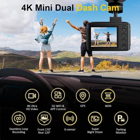 - 4K + 2.5K Dual Recording Dash Cam (Front and Rear): Ultra HD 4K (3840*2160P) for the front and 2.5K rear camera.