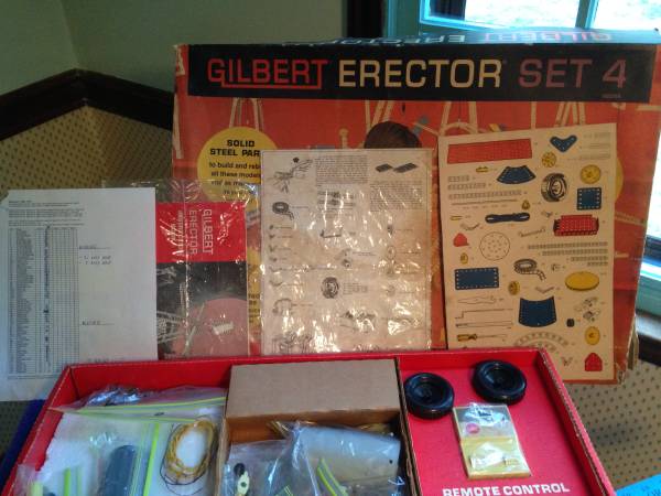 Erector set no. 4 vintage Gilbert #10354 box has some damage and there are 5 missing pieces, see picture of list of parts did not count the nuts and bolts smoke free home sorry we do not ship you...