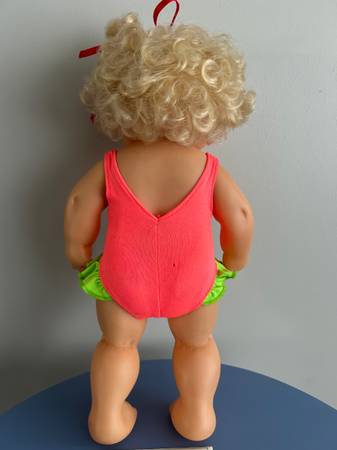 Doll is in very good condition. Bathing suit has been washed but has some light stains and a very small hole in the back. Please see & pinch pictures for details. Comes with original sunglasses...